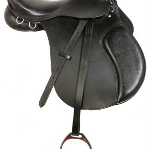 This traditional style all purpose saddle allows the rider to experience many different english disciplines without spending a fortune. Helps rider develop a secure and balanced seat with concealed knee rolls, padded flaps, and a medium-deep padded seat. This saddle is perfect for riders to work on equitation, and with the padded panels it is also comfortable for the horse. The high cantle and longer flaps makes this suitable for flat work, but the saddle also offers a lower pommel and slightly forward flaps for riders wishing to jump. Multiple D-Rings are great for attaching saddle bags and straps while hacking on the trail.