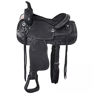 The Braden Trail Saddle Package features floral tooling, suede seats, silver dot embellishments and antique star conchos with silver overlay. Leather billet straps and floral tooled fenders complete the look.
