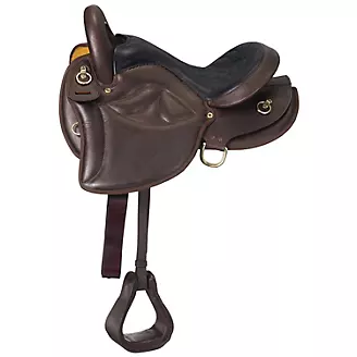 The dark oil Lady Gait Endurance Saddle features a rawhide covered tree with gaited bars, and in skirt drop d rigging.
